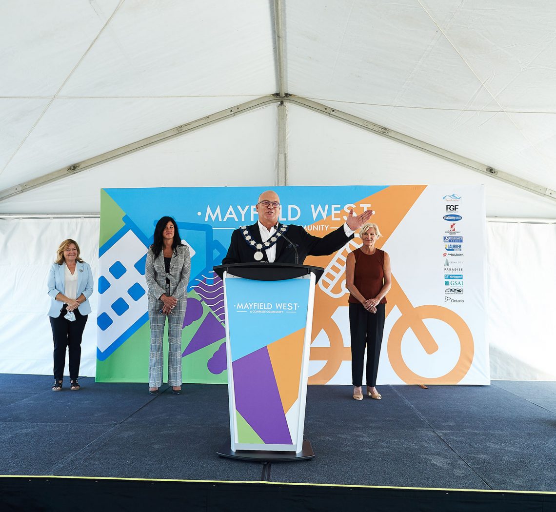 The ceremony marked the infusion of over 500 new jobs, housing for over 7,000 new residents, transit-supportive and complete community development, and the introduction of Smart City initiatives to the Town of Caledon. The event was well-received by all those in attendance. GSAI was proud to take part in the formal Ground Breaking of the brand-new Mayfield West Phase 2 Community.